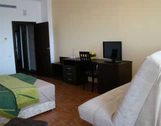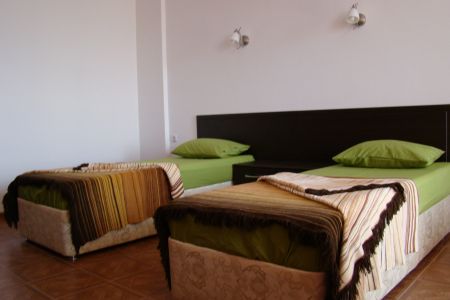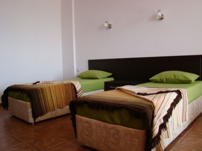 с балконами, откуда открываются красивые виды на море. Везде предусмотрен персональный санузел с ванной, в комнатах установлены кондиционеры, есть телевизор-ЖК, электрочайник и чайный набор посуды.